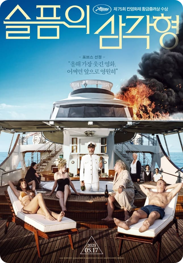 제75회 칸영화제 황금종려상을 수상한 영화입니다. 뜻밖의 사건으로 배가 전복이 되어버려 살아남은 8명의 무인도에서 벌어지는 블랙코미디입니다.