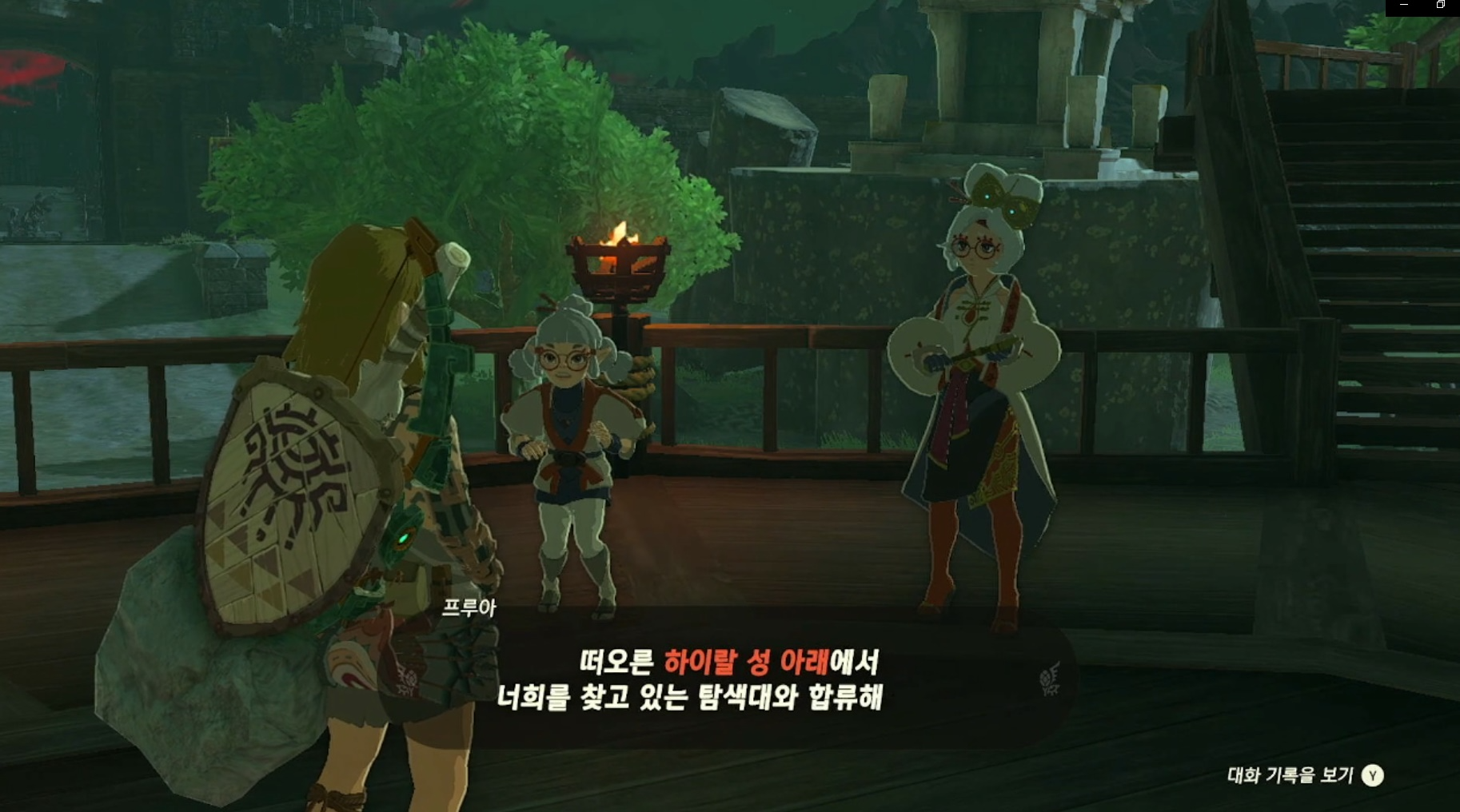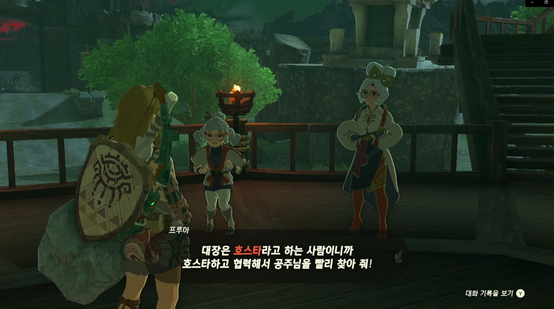 첫번째로 가게 되는 감시 요새라는 마을을 가는데 거기에 있는 NPC 프루아를 만나면 됩니다. 하이랄 성 아래에 호스타라는 사람을 찾아가라고 합니다.